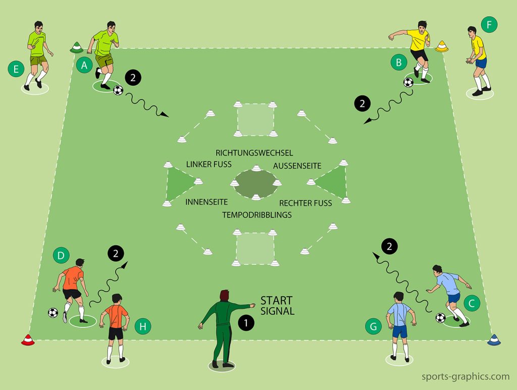 Beispielwettkampf von Fabian Seeger (FC St. Pauli) mit verschiedenen Anweisungen in der Grafik.