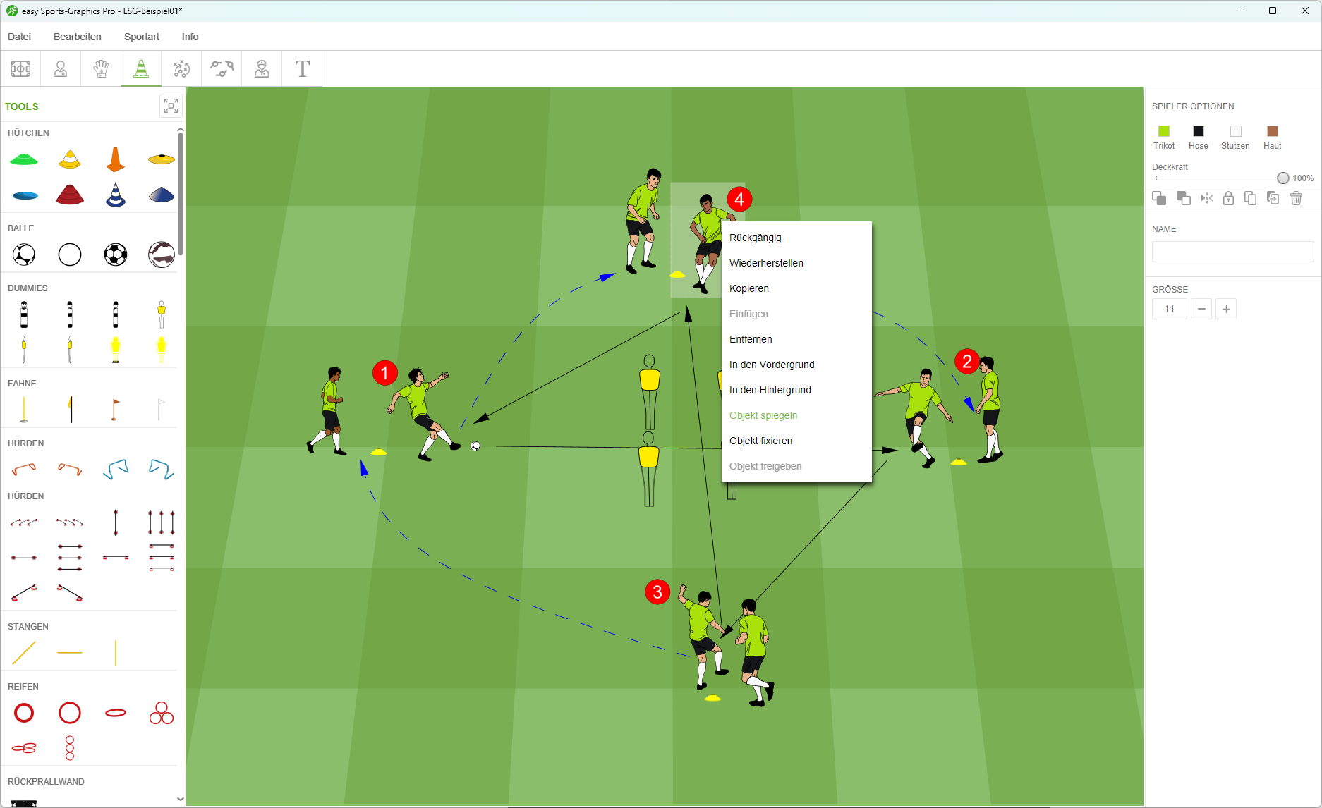 Ein Objekt oder Spieler kann über das Rechtsklick-Menü oder das Optionsmenü gespiegelt werden.