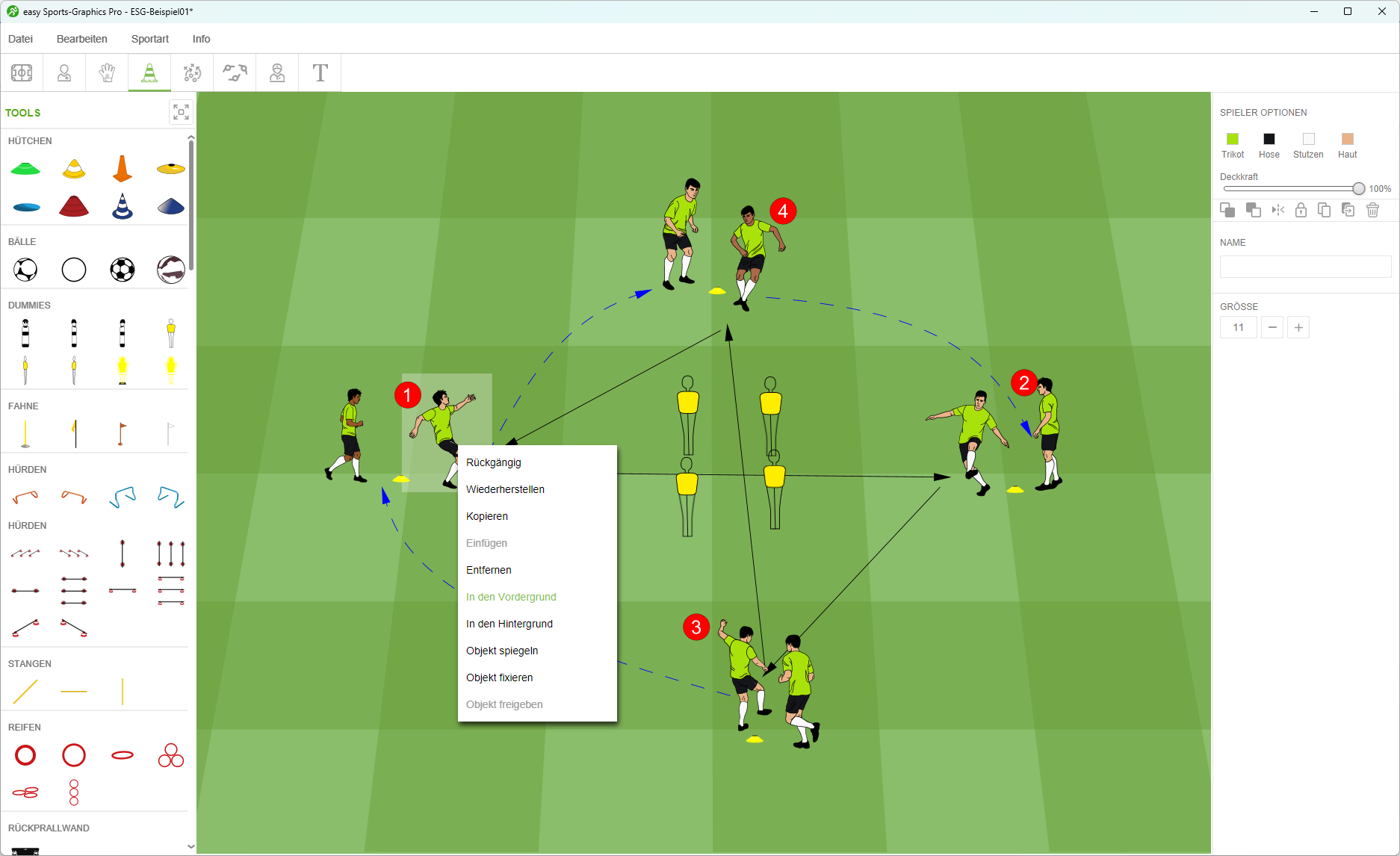 Über das Rechtsklick-Menü oder das Optionsmenü kann ein Element in den Vorder- oder Hintergrund verschoben werden. So lässt sich die Ebenen-Reihenfolge anpassen.